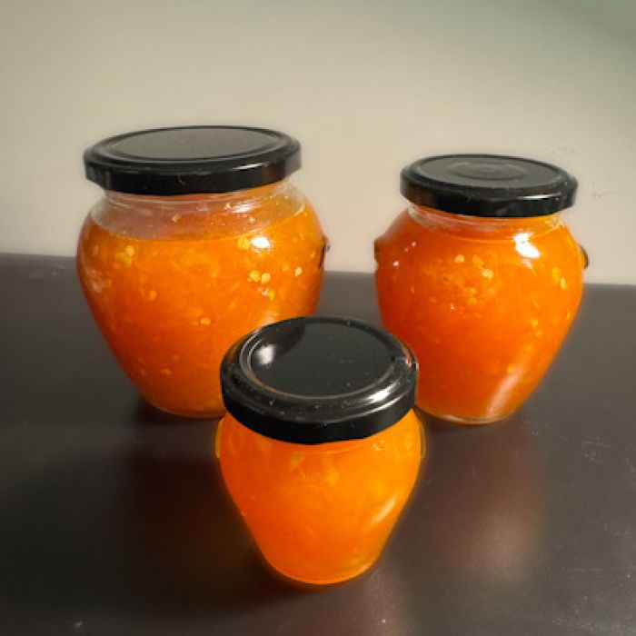 Our yellow chilli jam is filled with heat and zest. It includes two types of chilli peppers and lemon juice.